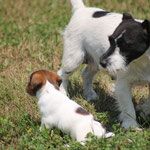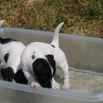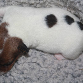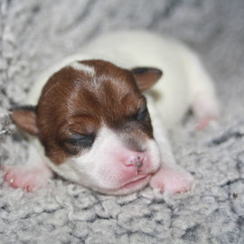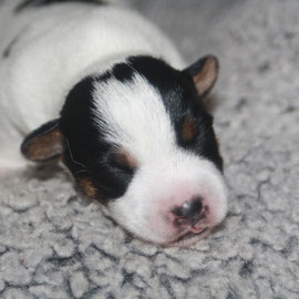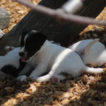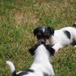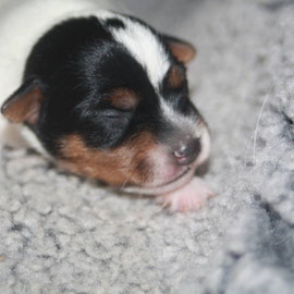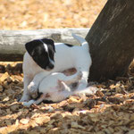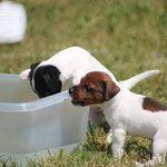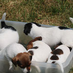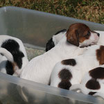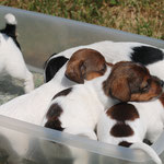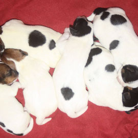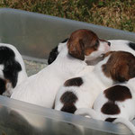 1 Rüde weiss/braun, 1 Rüde tricolor, 2 Hündinnen weiss/braun, 1 Hündin tricolor, 1 Hündin weiß/schwarz
